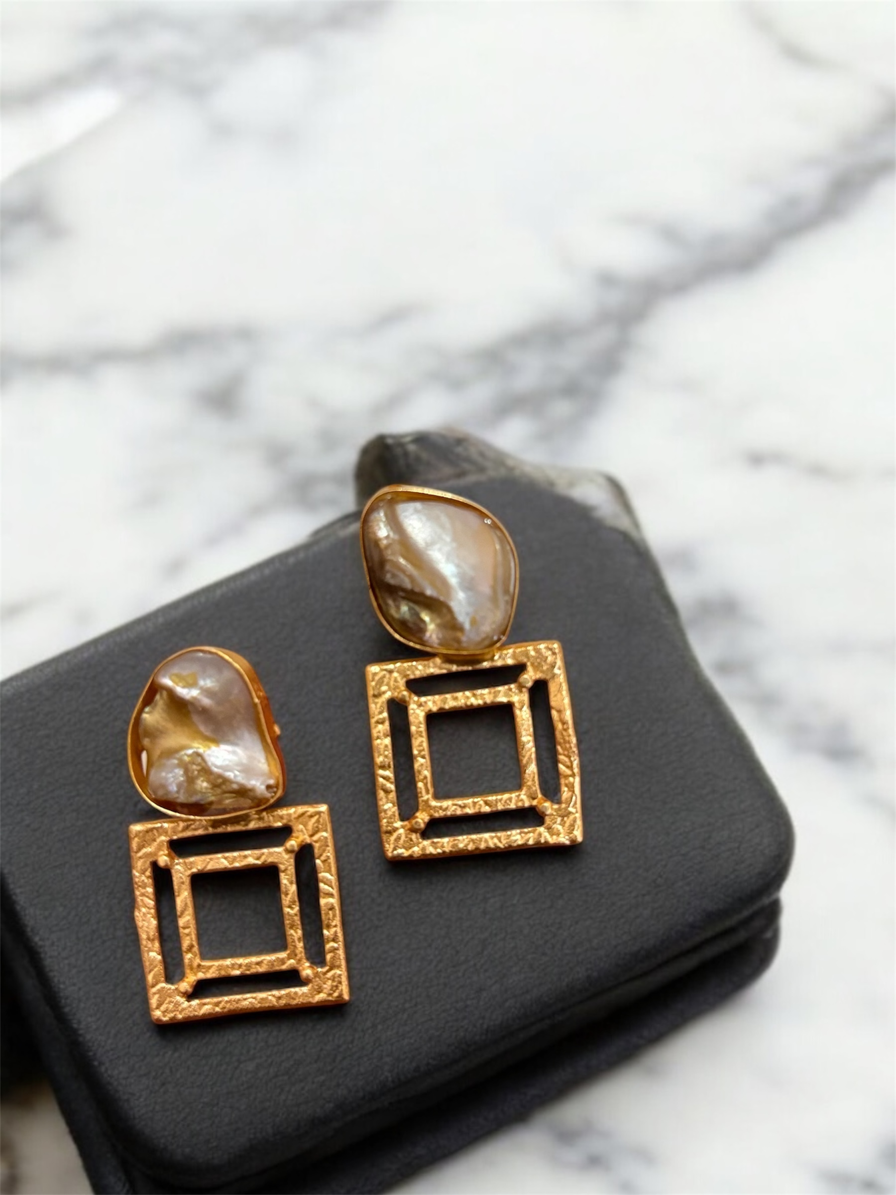 Elegant jewellery crafted with Mother of Pearl and pearl-like stones, set in premium brass.